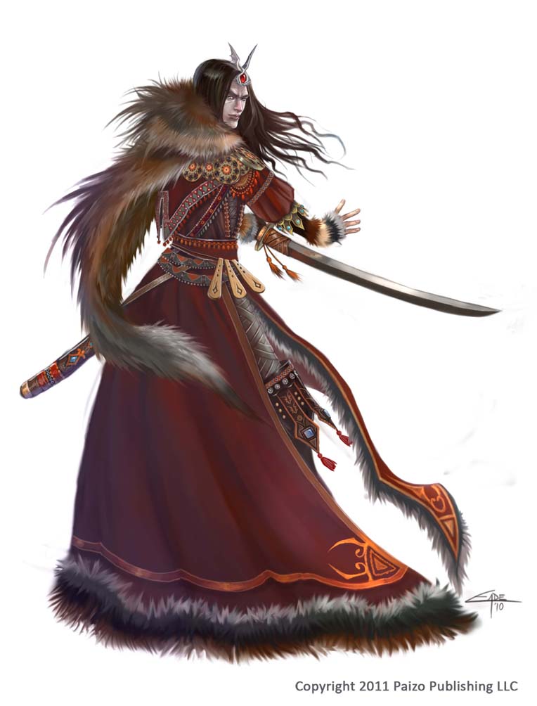 It's a shame, really. They're such a nice addition to the setting. The backstory, the reputation, it's so full of flavor. And with one of the most popular adventure paths being set right in their home territory, there's a very strong desire to create an Aldori Duelist. But the mechanics simply don't back up their fearsome reputation. An Aldori is defined by their distinctive Aldori Dueling Blade, which as exotic weapons go is extremely underwhelming. The special options available for the Aldori are mostly traps, with huge feat taxes for poor benefits. Because of this, practically any other sword-fighting build will be better than an Aldori. How can they be the greatest sword-fighters in Golarion? Honestly, I think the Aldori swordlords fill their fighting style with little misdirections like this on purpose. That way any rival dueling schools that try to copy their style will either learn false techniques or underestimate the Aldori.